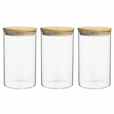 The Ecology Pantry Round Canister Set 3pce is made from light-weight borosilicate glass, and features bamboo lids. With a classic round shape design, these canisters will tidy your space and offer superior clarity. Stack them up and create the pantry of your dreams.