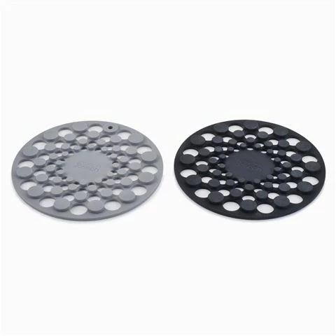 These two heat and stain-resistant circular trivets fit neatly together for compact storage.