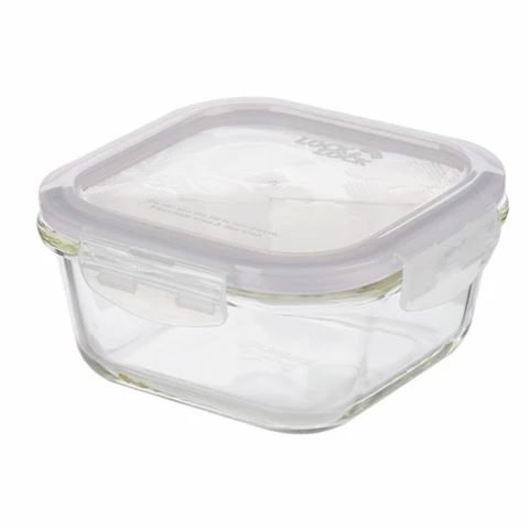 - Heat resistant airtight glass container with a four side locking system.